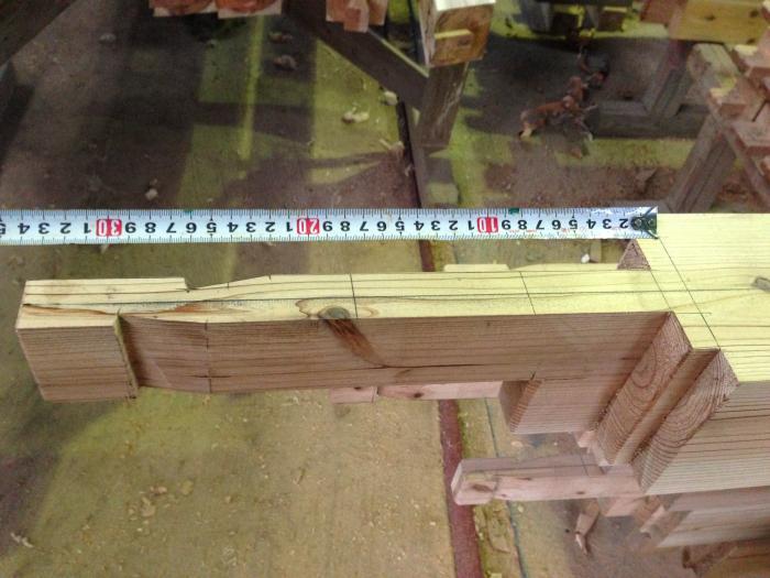 車知栓締めという伝統的な仕口です。柱と梁を緊結します。