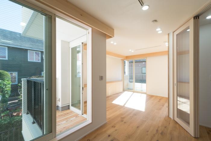 2階リビングの様子。南側だけでなく庭に面した北側バルコニーもあるため、光や風が通り四季を感じられる空間になっています。