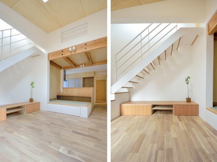 (左)2階リビング (右)タタミスペース入り口