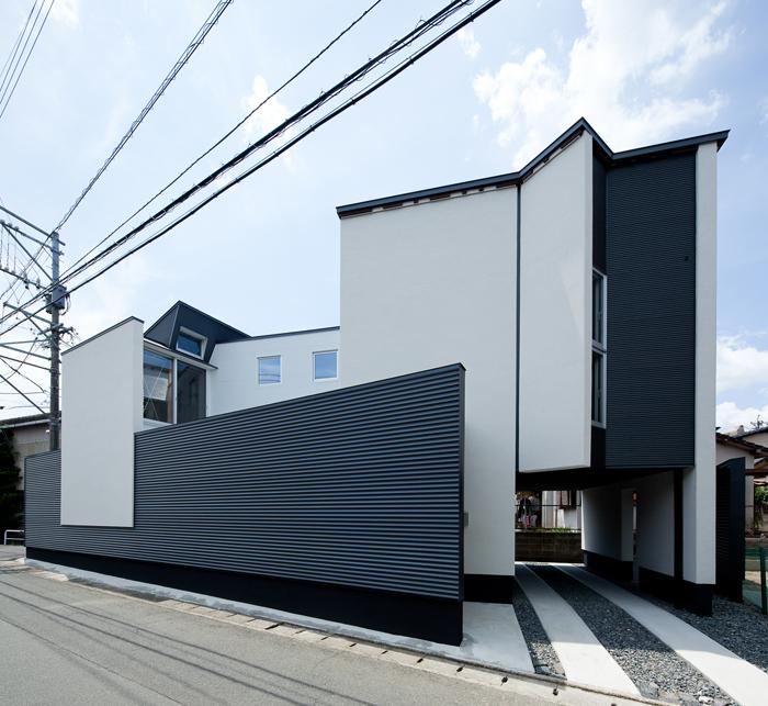 熊本城のエレメントを分解し内外に盛り込みながらも、南に先細りする敷地に接する道路と水路に沿った2本の軸で構成されたこの家のフォルムは、様々な流れに向かていく船のようであります。