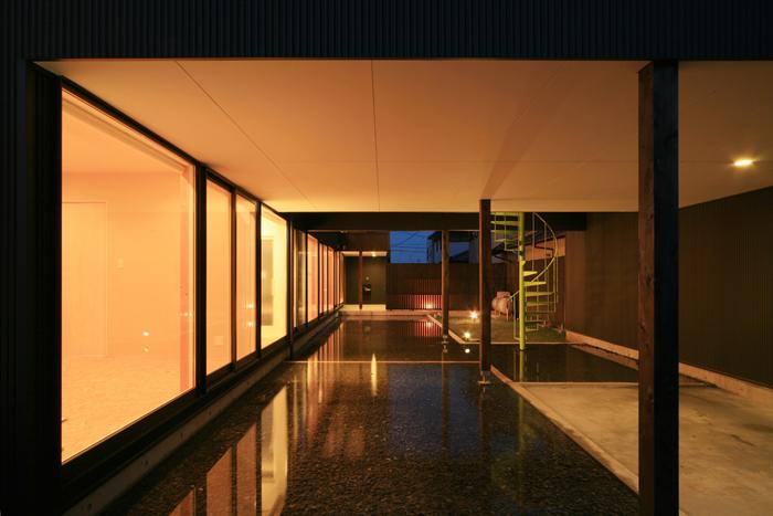 受け止めるように、南東に大きく開き、水盤のある中庭に面して生活をするスタイルとしています。