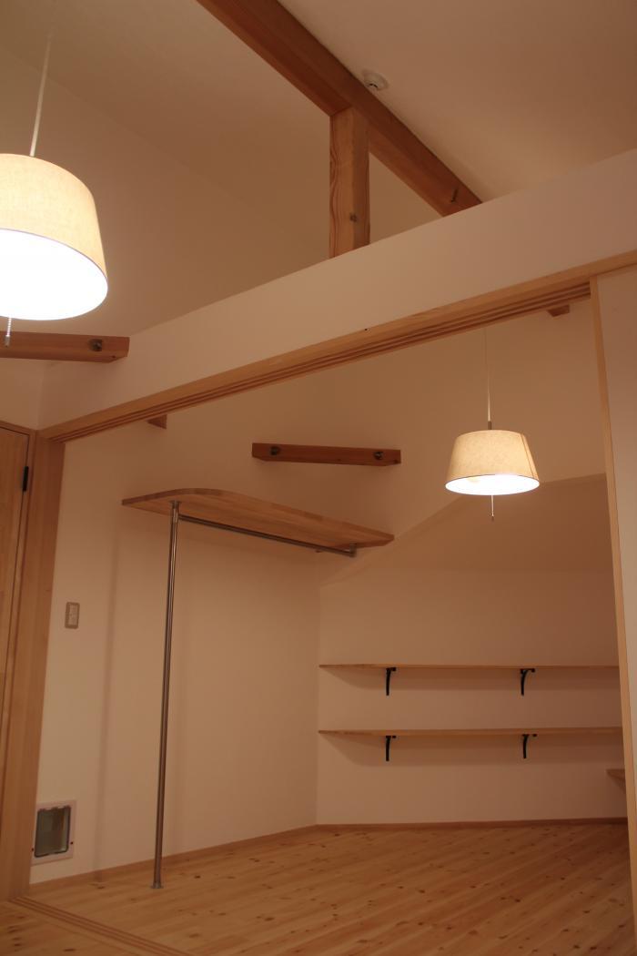 天井は屋根なりに仕上げているので建具上部は開放されています。