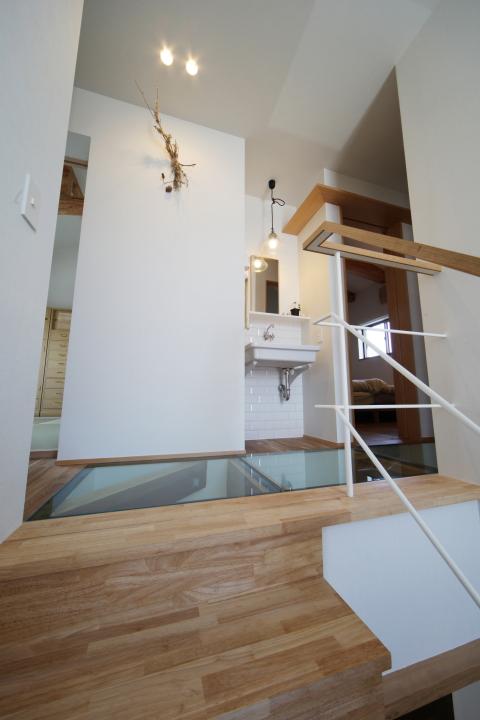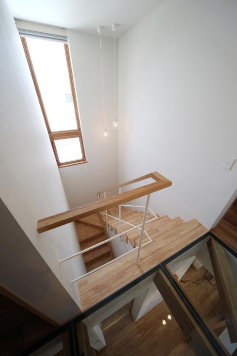 既設の建物は薄暗い窮屈な印象があった為、1階のLDKは、既設の洋間と和室、廊下の間仕切壁を取り払いスペースを最大限に確保し、東側の階段の吹抜を生かし朝日を中心に光を確保する様にしました。