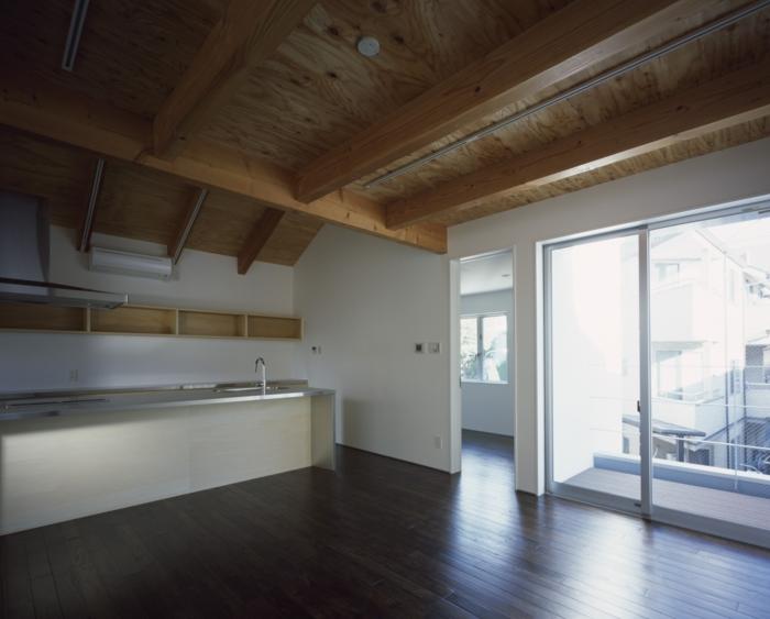 キッチンよりロフト方向を望む キッチンはシンプルなオーダーキッチン