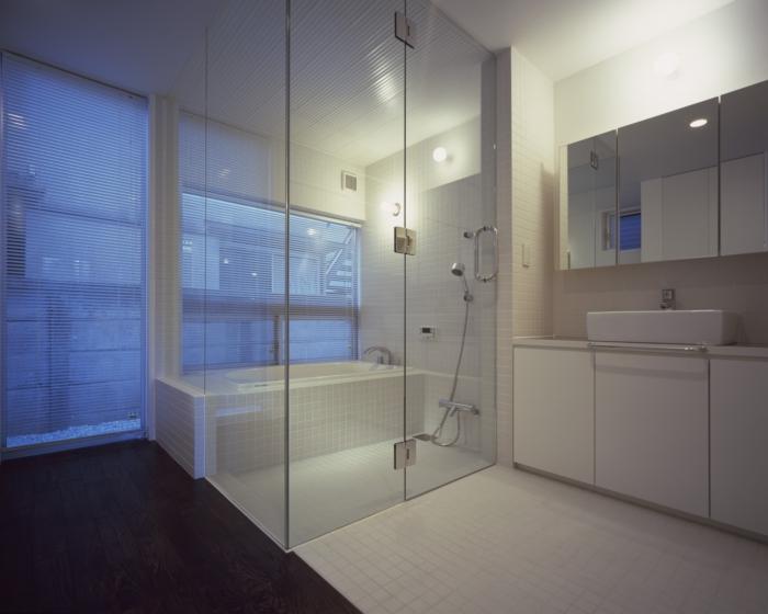 ガラス張りの浴室 一体感が出て実際より広く感じます