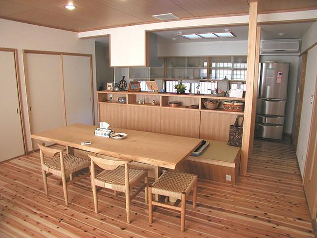 この二間続きの和室は南に面して日当たりもよく、南北につながる風通しの良いスペースなので、ここにLDK(居間兼食堂兼台所)を移動し、快適な光と風を得られる空間としました。