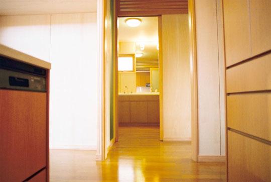 台所より見るユーティリティー。手前右側に和室があります。