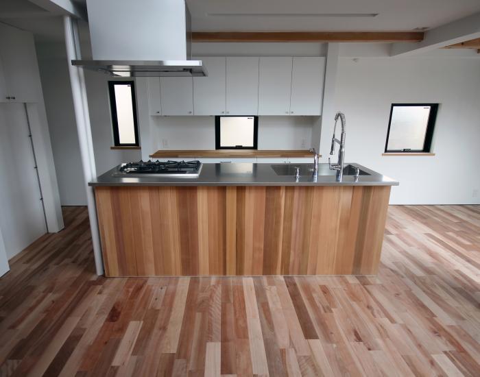 2階のリビングキッチンは、ウッディな大空間。
