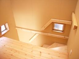 南側隣地境界線いっぱいに隣の建物が建つ中、どのように光を取り入れるべきかを考えました。道路との距離も近く、大きな窓は設けられない・・・・・・横からが無理なら上からだ!! というわけで、採光はトップライトからとることに・・・・