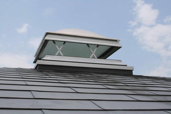 屋根の頂部に設けたパンタグラフ式のトップライト写真です。
