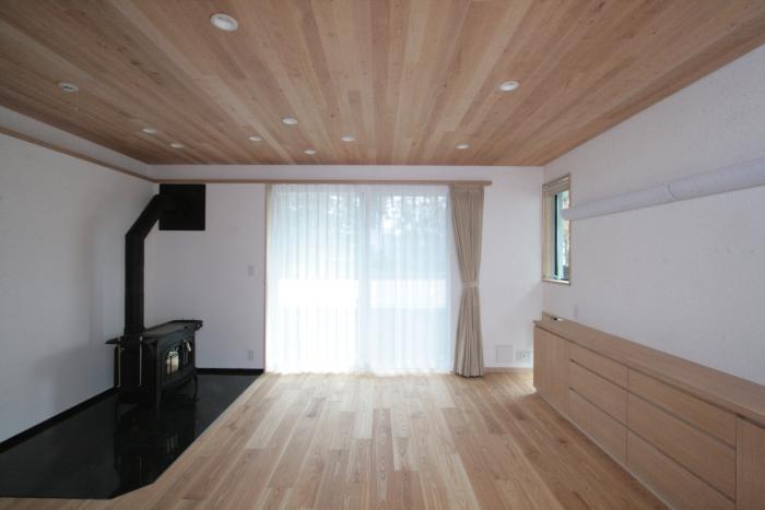 正面は南庭、左手は薪ストーブ。