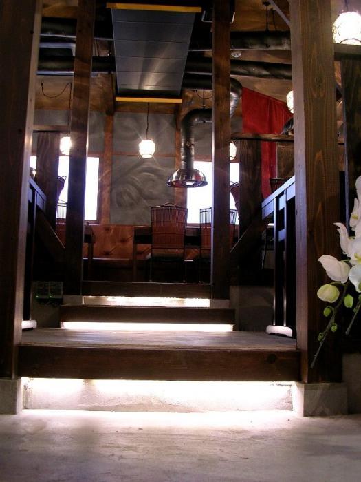 東京都四谷の昭和の匂いを強く残した街中にある焼き肉店。古い街並みに馴染むよう和風でまとめました。人通りの多い通りに面している為、1階客席の閉鎖感を防ぎ、なおかつ落ち着けることを狙いに、窓部分には有孔ブロックを積みアクセントにしています。内部は、構造体を見せ、塗り壁にして、古民家の雰囲気をだしました。
