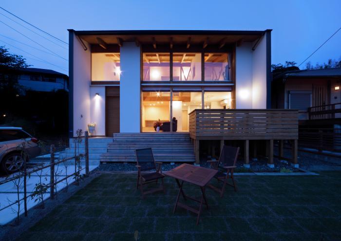 湖の前ということで、水害について心配されました。近隣の状況、お話などを伺って、通常より1mほど高くしています。そのため、庭や道路とのつながりを作るため、デッキとデッキ階段の他にデッキから繋がるデッキベンチを設けています。晴れの日や庭での行事に活躍しているそうです。
