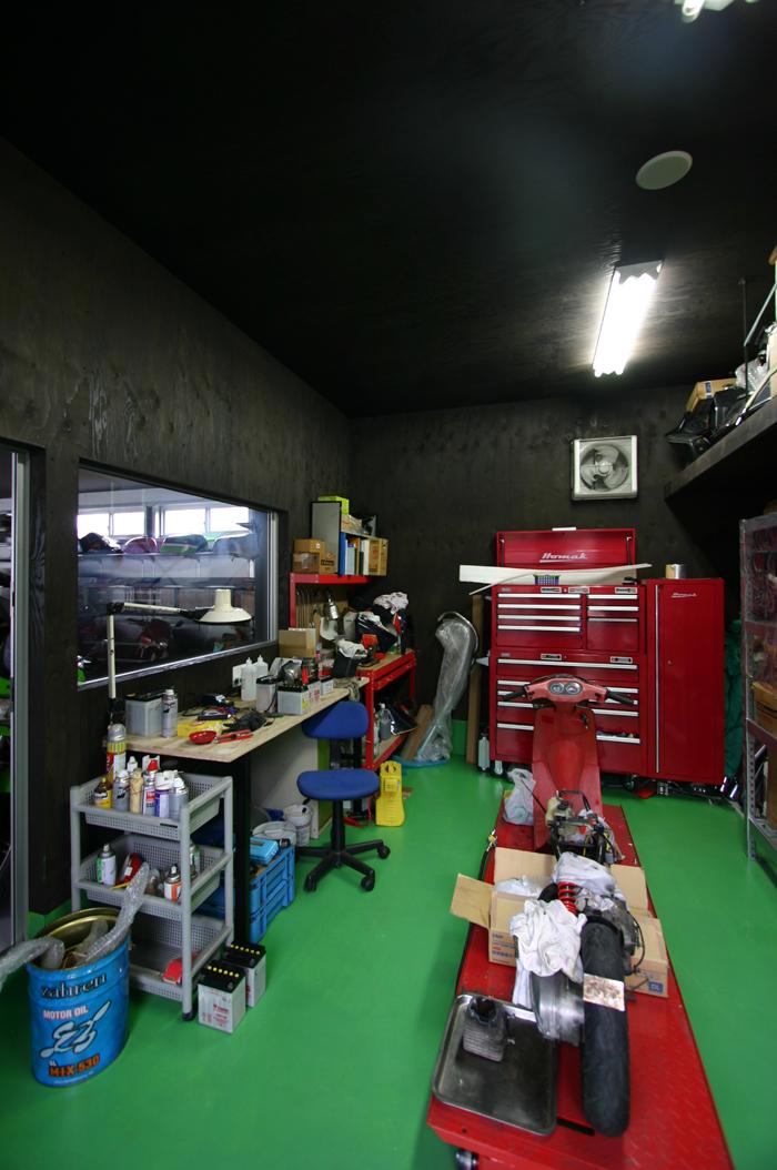 「若い頃から30年間好きで集めたバイク40数台。それを収容しメンテナンスを愉しみながら、年老いた母親(80歳)、家族とともに暮らしたい。」との希望をかなえたいとはいえ、40台のバイクを集められるスペースに適した場所がなかなか見つからず、結果、母親が住んでいたこの土地に隣地を買い足して建てる計画となった。結果良しですが。