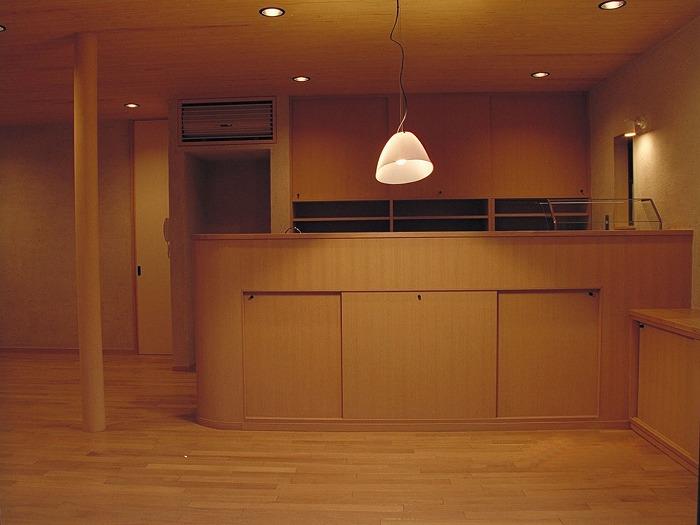空間は現代的ですが、和紙や青森ヒバのチップを配合した左官壁使いました。