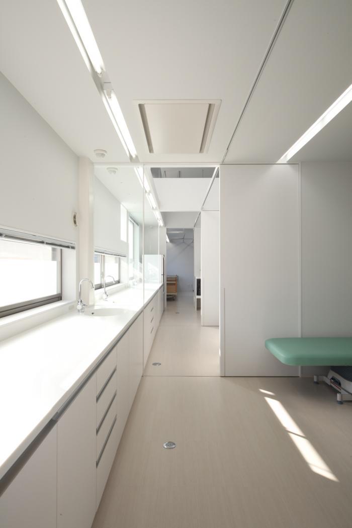 これまでの医療建築は、清潔感と信頼感がデザインソースであったが、今は完全にそうとも言い切れない。この建築は白いパッケージに山野を彩る代表的な色をランダムに配色し、窓は室内空間から必要とされる場所にのみ設けた。プランとしては医療建築のオーソドックスな平面計画としつつも、主張する建築となった。