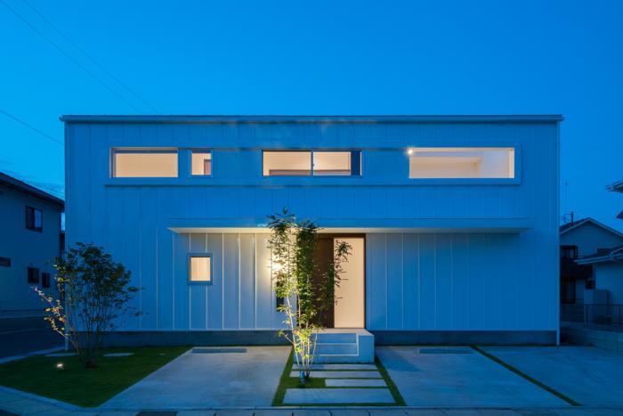 多摩川の支流のひとつ、浅川を臨む敷地に建つ住宅である。南側斜面に立地し、2階レベルでは遠くに広がる景色と陽射しがとても心地よく感じられる。