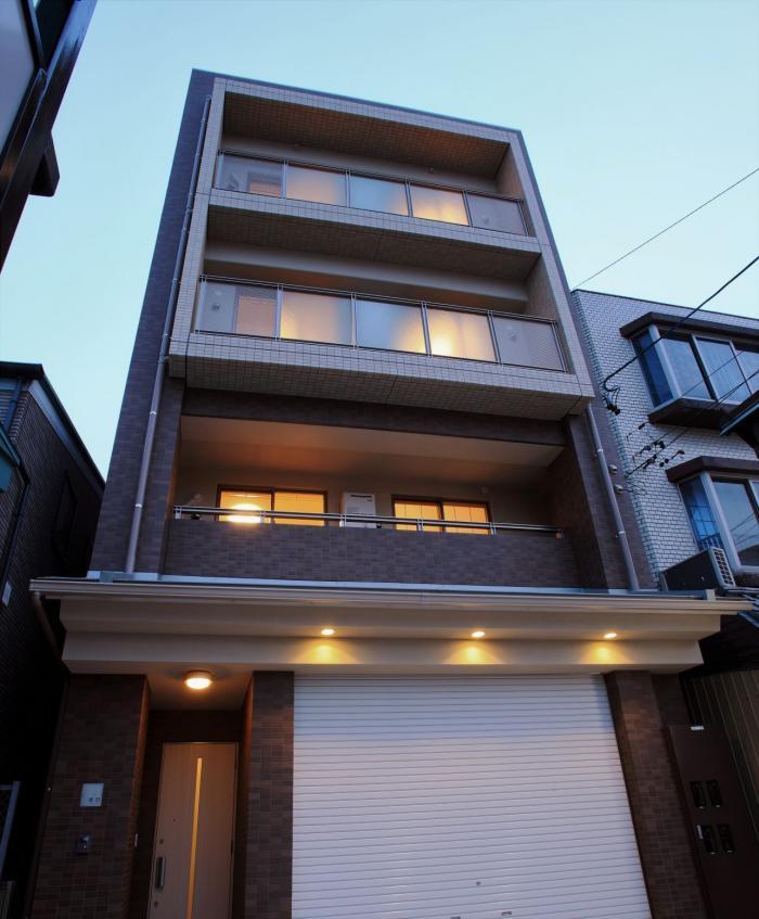 住宅密集地であるため、敷地外に面する開口部は極力制限し、3階のリビングにテラスを設けることで明るさを確保しています。テラスには外部ルーバーを設置、プライバシーを守りつつ、外観のアクセントとしました。