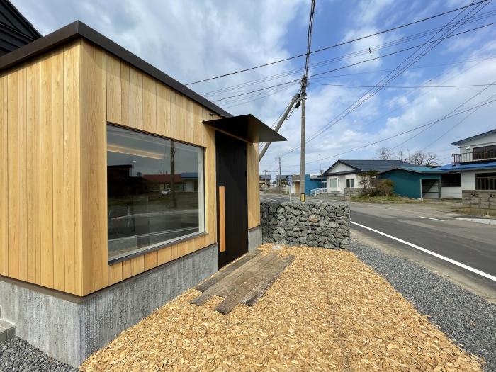 海から近く塩害地域でもあり、外壁には時間とともに風合いがまし耐候性も増す地元産の杉材を利用、地域に馴染む外観とする。