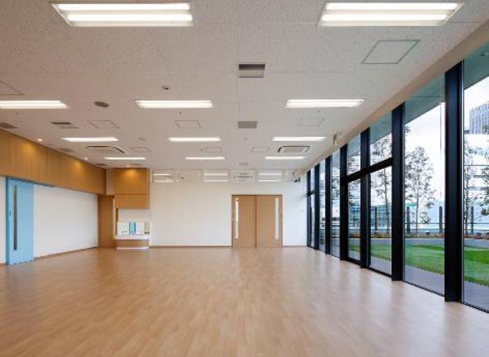海辺に近く、バックを山になだらかに田園が広がる地域に建つこの建物は、大らかなデザインが相応しいと考えました。象徴的な12角形のとんがり屋根と両サイドに羽のように広がる切妻屋根というデザインとしました。すべての保育室と遊戯室は、園庭に面していて大きな敷地と一体となったこども園となりました。 |
